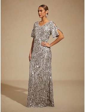 Femmes Robe maxi Robe fourreau Élégant Soirée Cocktail Paillettes Couleur Unie Fleuri Manche Courte Col ras du cou Gris ciel