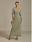 Femmes Robe maxi Robe fourreau Élégant Manche flottante robe demoiselle d honneur Cocktail Maille Embelli Coupe régulière Couleur Unie Demi Manches Col en V Vert cendré