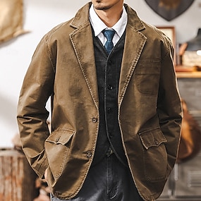 Hommes Blazer Veste de Travail Occasionnel Quotidien Vêtements de rue ancien Tenu de travail Printemps Automne Coton Couleur Unie Boutons Chaleur Thermique Décontracté / Quotidien Boutonnage simple