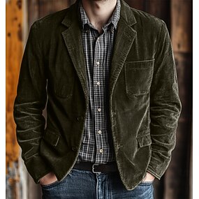 Homme Veste en Velours Côtelé Col cranté Mode Occasionnel Couleur Unie Blazer Noir Marron Vert Véronèse Coupe sur mesure à boutonnage simple à 2 boutons