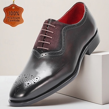 Chaussures Oxford pour homme en cuir de haute qualité – cuir de vachette véritable, modèle brogue à bout golf, style classique et élégant, confort optimal, idéales pour les mariages, les rendez-vous d'affaires, le bureau et les événements formels.