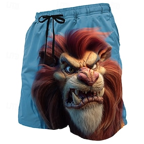 Homme Rugissement Lion animaux de dessin animé Maillots de bain Maillots de bain shorts de bain Shorts de Surf Taille Moyenne Hawaïen Drôle Vacances à la Plage Poches Latérales doublure en maille