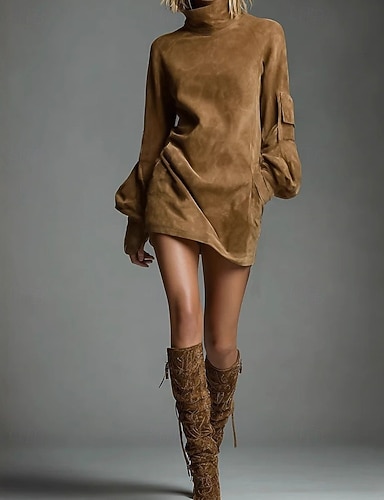 Femmes Mini Robe Robe fourreau Robe élastique Vacances Occasionnel Vacances Soirée Rue Coupe régulière Uni Col roulé Noir Marron Vert militaire Automne