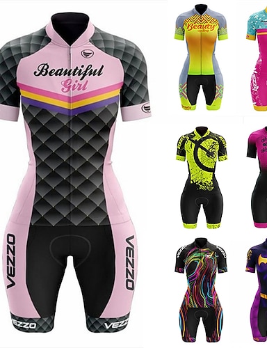 Femmes Combinaison néoprène de triathlon Manche Courte Triathlon Été Printemps Automne Rose + Blanc Bleu + Rouge + Noir Noir Graphique Vélo Cyclisme "Fitness, course et yoga" Élastique Coque