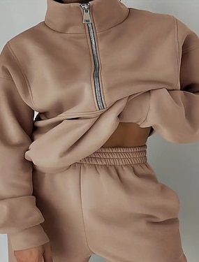 Femmes Jogging Pantalon Survêtement en polaire Haut de piste Fermeture éclair 2 pièces Couleur Unie Veste et Pantalon de Jogging Ensemble Vêtements Automne Vert forêt Bleu marine Salle de sport