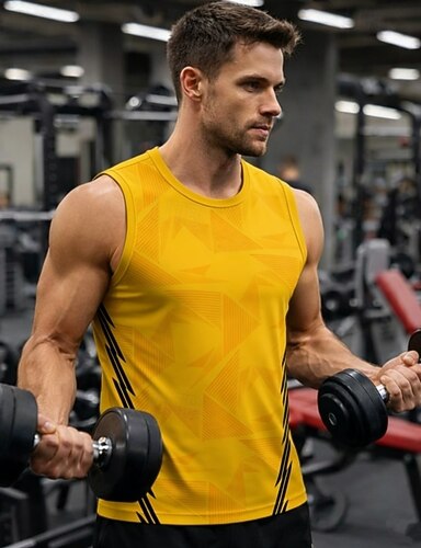 Homme Graphique Géométrique Débardeur d'entraînement Débardeur de course Débardeur de gym Été Sans manches Séchage Rapide Doux Respirant Entraînement en salle Course Marche Jogging Jaune Rouge Bleu