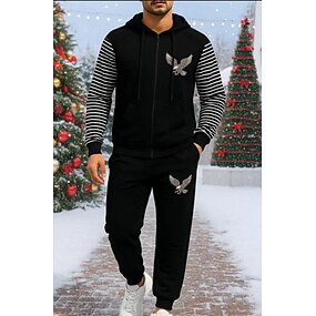 Noël Homme Survêtement 2 pièces Sweat à capuche Lounge Sweat-shirt entièrement zippé Fermeture intégrale avec poche Bloc de Couleur Ensemble Vêtements Printemps Noir Voyage Course Respirant manche