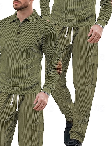 Homme Sweat-shirt Ensemble Survetement Ensemble de tenues Revers Extérieur Quotidien Sports Cordon de serrage Boutonner Avec Poches Bloc de Couleur Noir bleu marine Kaki Polyester Tenues de Sport