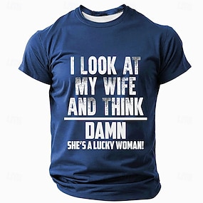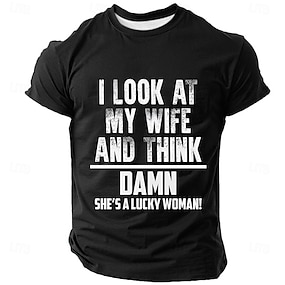Sweat-shirt à manches longues humoristique pour homme graphique rouge - 'Je regarde ma femme et je pense putain c'est une femme chanceuse' Humour de mari