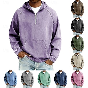 Homme Sweat à capuche Sweat à capuche quart zippé Sweat à capuche tactique Rouge Bleu Violet Vert Kaki À capuche Uni Fermeture éclair Bloc de Couleur Sport & Loisir Occasionnel Quotidien Streetwear