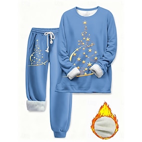 Femmes Vacances Quotidien Élégant Ensembles deux pièces Survêtement Ensembles de Pantalons manche longue Col ras du cou Noël laid Cordon de serrage Imprimé Occasionnel Quotidien Noir Rose Claire Bleu