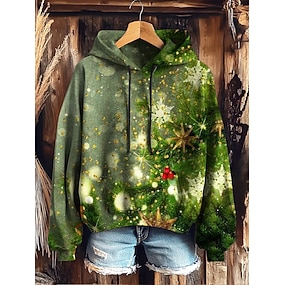 Sweatshirt à Capuche Femmes Noël Pullover Graphique Décontracté Manches Longues À Capuche Tops Réguliers Fête Soirée De Rue Quotidien Noir Blanc Rouge Vert Printemps Automne Hiver