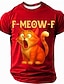 T-shirt à manches courtes avec imprimé 3D de chat pour homme, style humoristique, col ras du cou, style streetwear, noir, rouge, bleu, été, printemps, tailles S, M, L, XL, XXL, XXXL