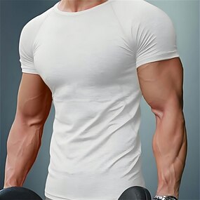 Homme T-shirt Chemises anti-humidité Manche Courte Col rond Printemps, Automne, Hiver, Été Uni Muscle Athleisure Confortable Sports Aptitude Course Noir Blanche bleu marine T-shirt haut de gamme pour
