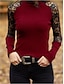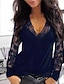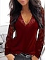 Femmes Haut d'épissage en dentelle Chemisier Uni Élégant ancien Occasionnel manche longue Col en V Hauts Réguliers Quotidien Fête Sortir Froncé Garniture en dentelle Noir Vin bleu marine Printemps