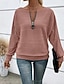 sweat-shirt femme élégant moderne uni travail col rond fermeture éclair coupe ample manches longues noir blanc rose gris printemps automne