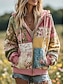 Sweat à capuche patchwork vintage boho imprimé 3D pour femmes zip-up floral sweat-shirt à capuche long zip-up avec poche léger décontracté zip-up vêtement de rue quotidien patchwork poche automne