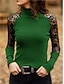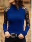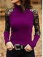 Femmes Chemisier Couleur Unie Élégant Occasionnel manche longue Col haut Hauts Réguliers Quotidien Dentelle Patchwork Bleu Noir Vin Bleu Roi Violet Printemps Automne Hiver