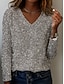 Noël Femmes Chemisier Couleur Unie Élégant Basique Occasionnel manche longue Col en V Hauts Réguliers Quotidien Paillettes Argent Noir Rouge Vert Printemps Automne Hiver