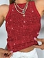 Femmes Chemisier Hauts à paillettes Débardeur caraco Uni Élégant Métallique Sexy Sans manches Col ras du cou Hauts Réguliers Quotidien Fête Sortir Paillettes Noir Blanche Vin Été Printemps Automne