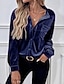 Femmes Chemisier Hauts Élégants Bloc de Couleur Uni Élégant ancien Dames manche longue Col en V Hauts Réguliers Travail Quotidien Fête Patchwork Bleu Automne Hiver