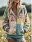 Femmes Sweatshirt Pull Sweats zippés Graphique Paisley Mode Occasionnel manche longue Col ras du cou Col rond Hauts Réguliers Rue Tenue Quotidienne Fermeture éclair Imprimé Bleu Vert Beige Automne