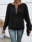 T-shirt femme à manches longues avec fermeture éclair quart style décontracté graphique tribal vintage bohème tropical hawaïen col en V tops réguliers quotidien sorties noir printemps automne