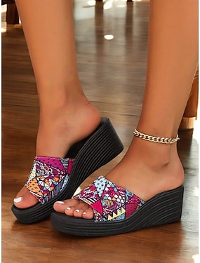 sandales compensées colorées à enfiler pour femmes avec imprimé ethnique – conception de plateforme confortable pour l'été, la plage et les vêtements décontractés