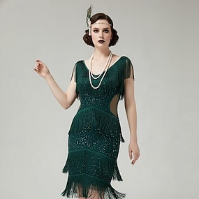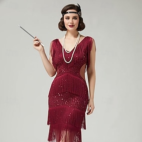 Années Folles Années 1920 Mi-long Robe Charleston Sans manches Gatsby le Magnifique Paillettes Frange Col en V Déguisement Femmes Noël Carnaval Mascarade Soirée à thème rétro Danse Charleston Adulte