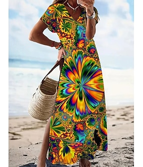 Femmes Robe maxi Robe d'Été Robe T-Shirt Robe trapèze Vacances Occasionnel Plage Sortir Coupe régulière A Ombre Graphique Abstrait Manche Courte Col en V Bleu Jaune Orange Été Printemps