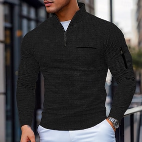 Homme Chemises Polo Gaufre Texturé Sport & Loisir Tenue quotidienne Zip quart manche longue Mode Confortable Bloc de Couleur Zip Up Avec Poches Printemps & Automne Inter-saisons Coupe régulière Noir