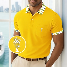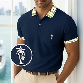 Homme Polo Chemise de golf Occasionnel Fête Revers Manche Courte Mode Basique Fleuri Hawaii Patchwork Avec Poches Été Printemps Coupe régulière Noir Blanche Fuchsia Turquoise Polo