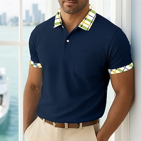 Homme Polo Occasionnel Fête Col montant Manche Courte Basique Moderne Plaid Bloc de Couleur Boutons Été Printemps Bleu bleu marine Violet Marron Vert Polo