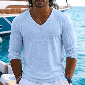 Homme A Ombre Polos Hawaïens Manche Courte Polos Col en V Occasionnel Resort Athleisure Tenue quotidienne Vêtements de vacances Printemps & Été Bleu Bleu Clair Rouge