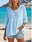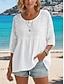 Femmes Chemise Bohème Chemise en Dentelle Tunique Haut à œillets Cordon de serrage Crochet Uni Vacances Chaussures de plage Manche cloche Col en V Quotidien Rue Noir Blanche Kaki Été