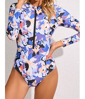 Femmes Maillots de Bain Une Pièce Monokini Maillot de bain Contrôle du ventre Taille haute Mince Vacances Tenues de plage Fleuri Col haut Sans manches Maillots de bain