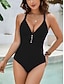 Femmes Maillots de Bain Une Pièce Monokini Maillot de bain Contrôle du ventre Taille haute Mince Dos nu Vacances Tenues de plage Bloc de Couleur Col en V Sans manches Maillots de bain