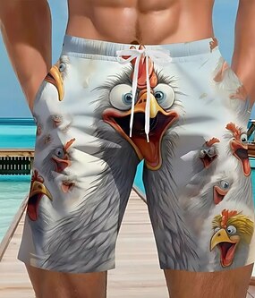 Homme Poussin Drôle Joueur guitariste Shorts de bain Shorts de Surf Caleçons de Bain Taille Moyenne Streetwear Hawaïen Vacances Cordon de serrage doublure en maille Taille Élastique Designer Vêtement