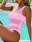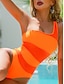 Maillot de bain une pièce pour femmes amincissant colorblock monokini contrôle du ventre taille haute slim dos nu vêtements de plage de vacances col U sans manches