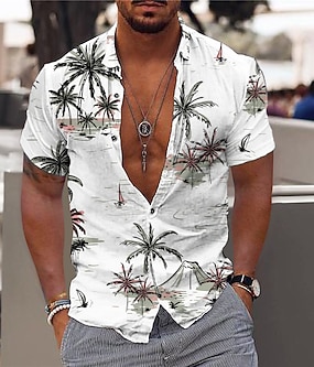 Homme Cocotier Nature et paysages Plantes Tropicales Chemise hawaïenne Chemise Boutonnée Chemise Aloha Manche Courte Hawaïen Occasionnel Vacances Été Printemps Col Rabattu Impression 3D chemises