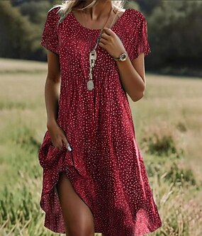 Femmes Robe Midi Robe trapèze Robe d'été Vacances Occasionnel Plage Coupe régulière Fleuri Graphique Manche Courte Col en V Marron clair Vert Été Printemps