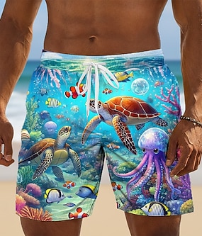 Homme Tortues Créatures de la mer Caleçons de Bain Surf Boardshort Short Taille médiale Vêtement de rue Hawaïen Casual du quotidien Vacances Poche Cordon Taille elastique Designer Vêtement Tenue