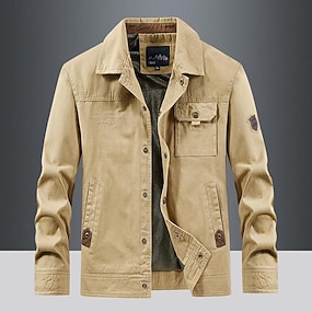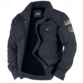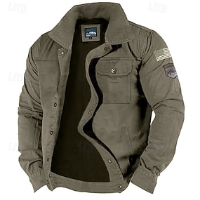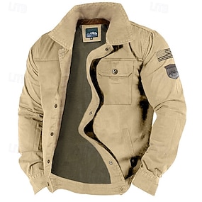 Homme Veste d'extérieur Veste tactique Extérieur Usage quotidien Chaud Zippé Poche Automne Hiver Plein Mode Vêtement de rue Revers Normal Noir Kaki Vert Véronèse Veste