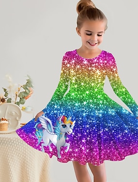 T-shirt à manches courtes motif dragon arc-en-ciel 3D Rainbow Lil Dragonz de Sheena Pike pour fille, mode été/printemps, basique, pour enfants de 4 à 12 ans, col ras du cou, décontracté, pour