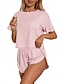 Femmes Ensemble Pyjama Occasionnel Confort Cœur Lettre Taille Élastique Shorts Quotidien Maison Manche Courte Col ras du cou Rose Claire Blanche Rose Claire Fuchsia Gris Été Printemps Coupe régulière