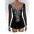 Robe de patinage artistique Femmes Fille Patinage Robe Tenues Noir Dos Nu Ourlet asymétrique Spandex Maille Haute Élasticité Compétition Tenue de Patinage Paillettes manche longue Patinage artistique