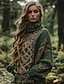 Pull viking pour femme, vintage, col roulé, géométrique, côtelé, tricoté, imprimé, manches longues, style décontracté, pour l'extérieur, le week-end, vert, automne et hiver