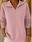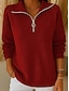 sweat-shirt femme pull décontracté texturé uni vêtements de tous les jours col rond zip quart manches longues noir blanc rouge gris automne& hiver