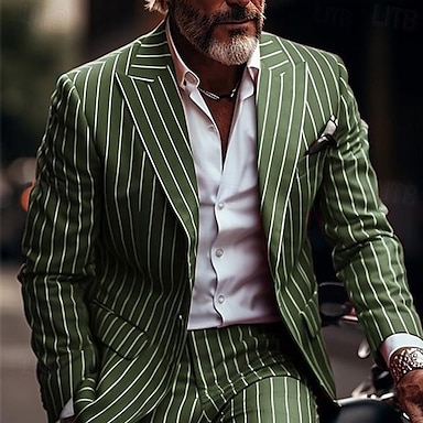 Homme Blazer Affaires Cocktail Fête de mariage Sans pantalon habillé Mode Occasionnel Printemps & Automne Polyester Rayures Avec Poches Boutons Confortable Simple Boutonnage veste Rouge Bleu Vert