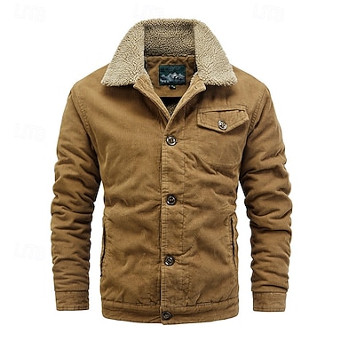 Homme Veste d'hiver Veste en Velours Côtelé Veste en Polaire Veste Cargo Vacances Quotidien Chaleur Thermique Avec Poches Toison Automne Hiver Uni Mode Streetwear Revers Régulier Café Veste